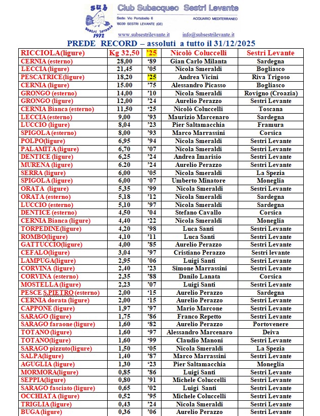 Prede record 2025(assoluti)