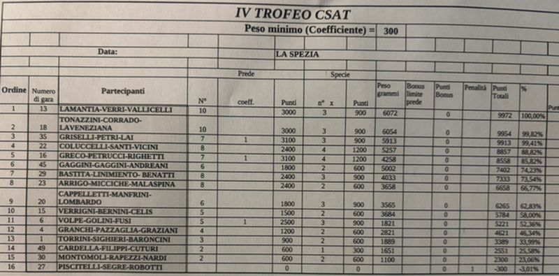 Caffero) con 8 pesci e la preda più grossa. Per la classifica completa e una selezione fotografica vedere