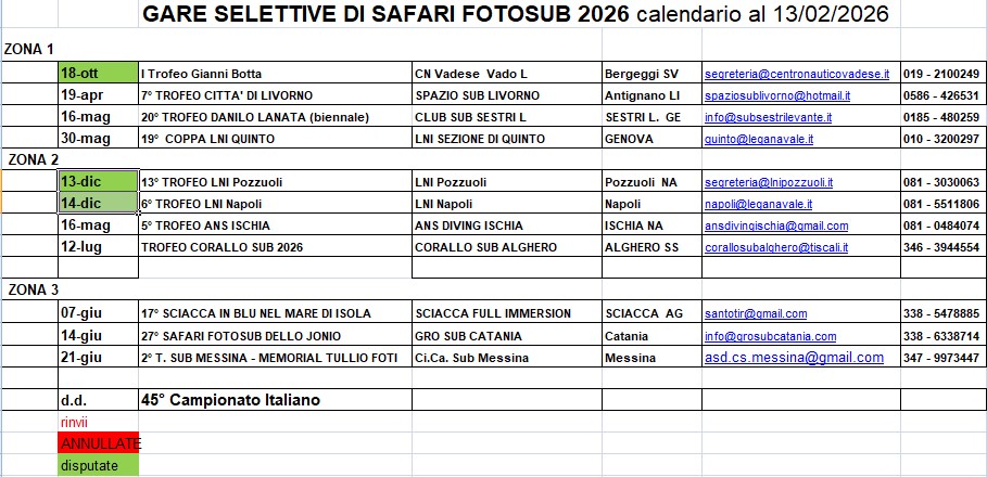 CAMPIONATO SOCIALE SAFARI FOTO SUB CLASSIFICA